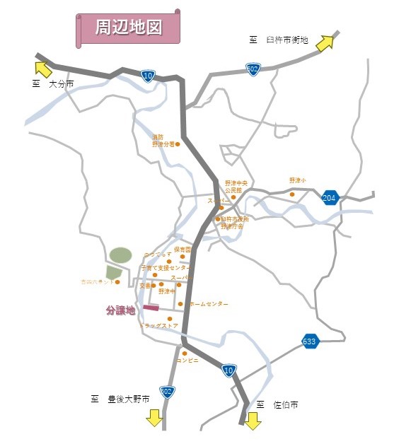 (2)所在地/大分県臼杵市野津町大字吉田字仮屋(臼杵市立野津中学校横)