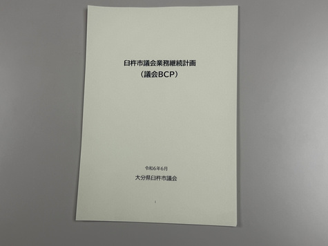 臼杵市議会では、大規模災害などの非常時にあっても、議事・議決機関、住民代表機関として、議会の機能維持を図り、議会機能を継続するため、必要な組織体制や議会・議員の役割と行動基準などを定めた臼杵市議会業務継続計画(議会BCP)を策定しました。