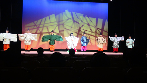 第18回歳末助け合いチャリティーショー(臼杵会場)が、臼杵市民会館大ホールで開催され、臼杵地域の議員8名が出演しました。今年の演目は、舞踊「帰ってきた『かぐや姫』」でした。かぐや姫(副議長)と7人の麿(まろ)様の衣装をまとい、楽しく腰を振り踊る姿は、観客の皆さんにも好評でした。